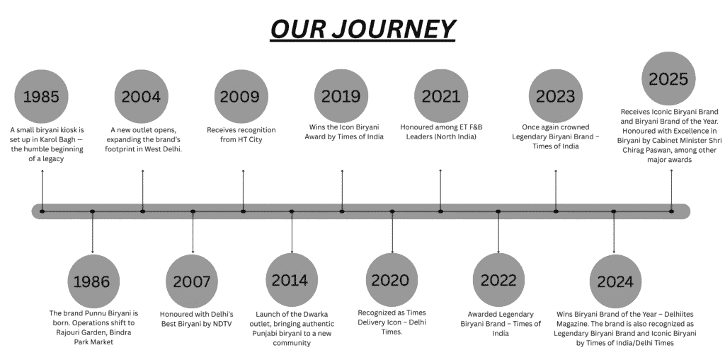 Since 1986, Punnu Biryani has been proudly upholding the true essence of Punjabi culinary tradition. What began as a humble family venture in Delhi has grown into a beloved name trusted and cherished by biryani lovers across the city.