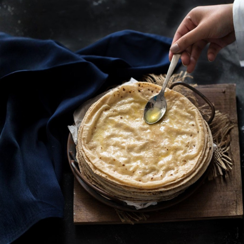 Tandoori roti brushed with desi ghee or butter for extra flavor.