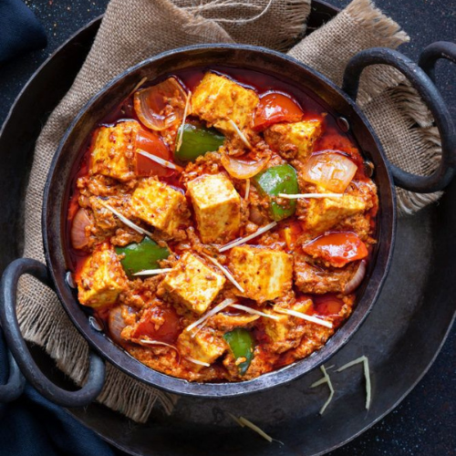 Paneer cooked with onions, capsicum, and crushed spices in a thick masala base.