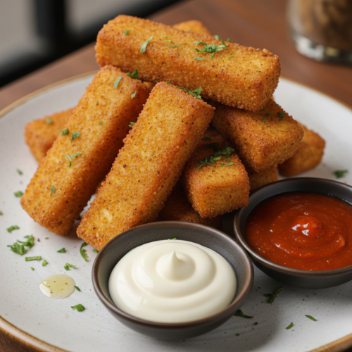 Paneer fingers dipped in seasoned batter and fried until golden. Served with: Mayonnaise & red chilli sauce.